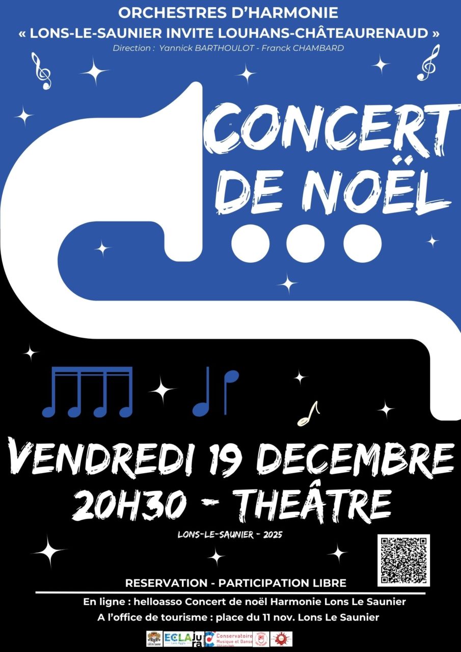 RESERVATION – En ligne : helloasso Concert de noël Harmonie Lons-le-Saunier(ci-joint QR Code)