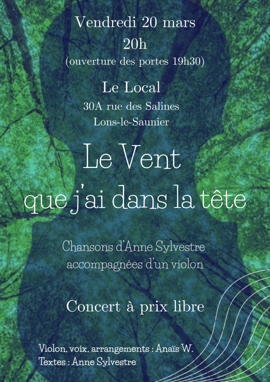 🎵🎤🎻 Vendredi 20 mars – CONCERT par ANAÏS – Le vent que j’ai dans la tête