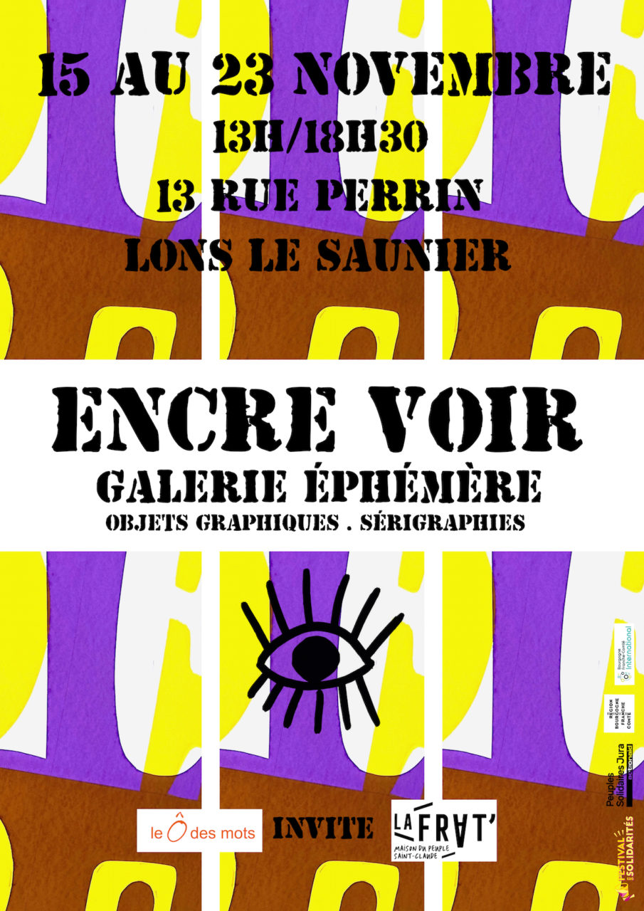 Le Ô des mots, ouvre une galerie éphémère « Encre Voir » au 13 rue Perrin Lons-le-Saunier pour présenter les œuvres sérigraphiées de l a La Fraternelle de Saint-Claude et la collection d’objets graphiques et poétiques du ô des mots