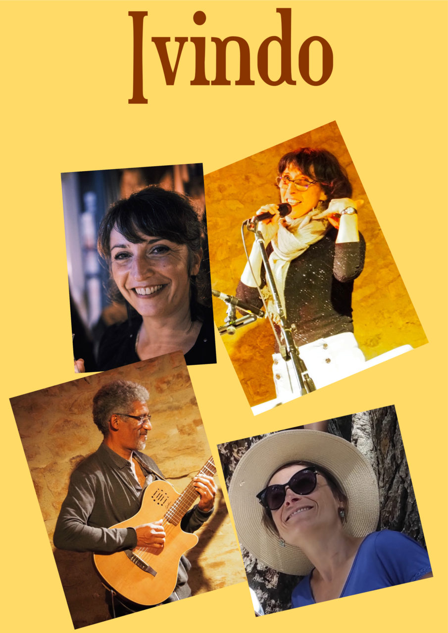 « Ivindo » est une rivière du Gabon…..c’est aussi le nom d’un quartet musical composé de Lila, Myriam et Claire au chant accompagnées d’Emmanuel à la guitare .