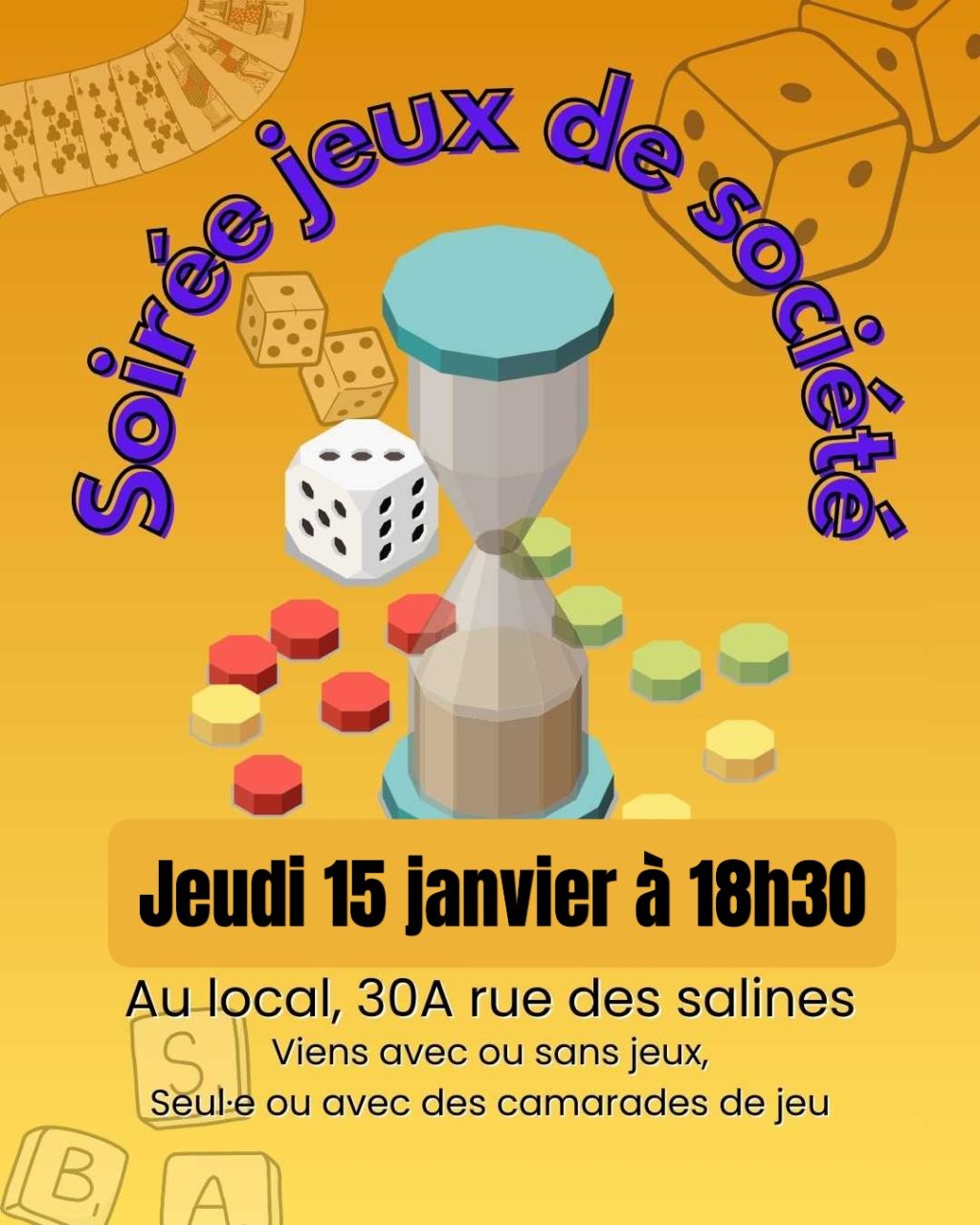 Viens au local pour jouer à des jeux de société.