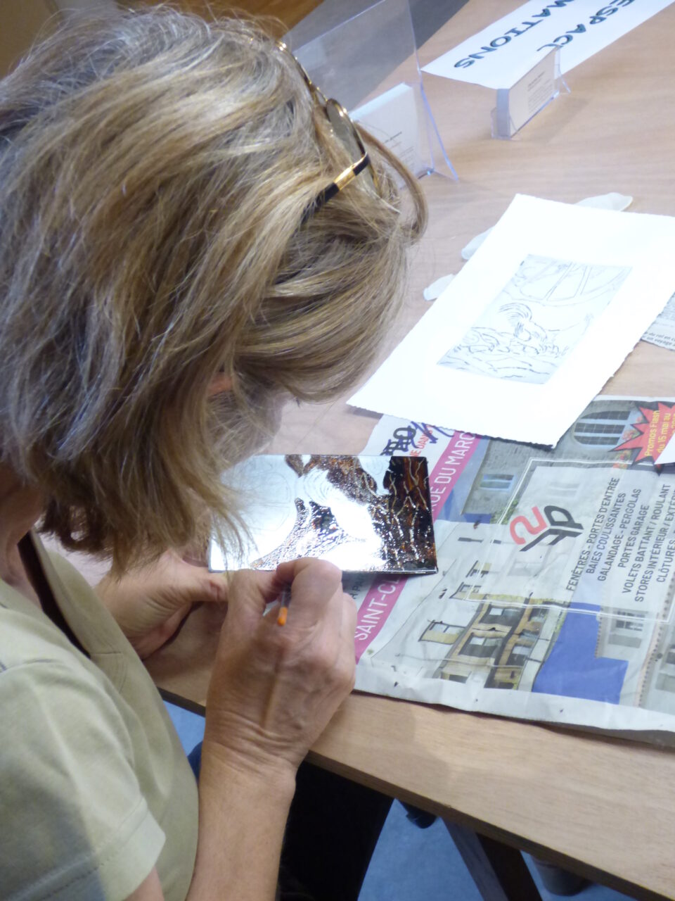 Nul besoin de connaissances spécifiques pour vous initier à la gravure selon les techniques de l’aquatinte et de l’eau-forte.
